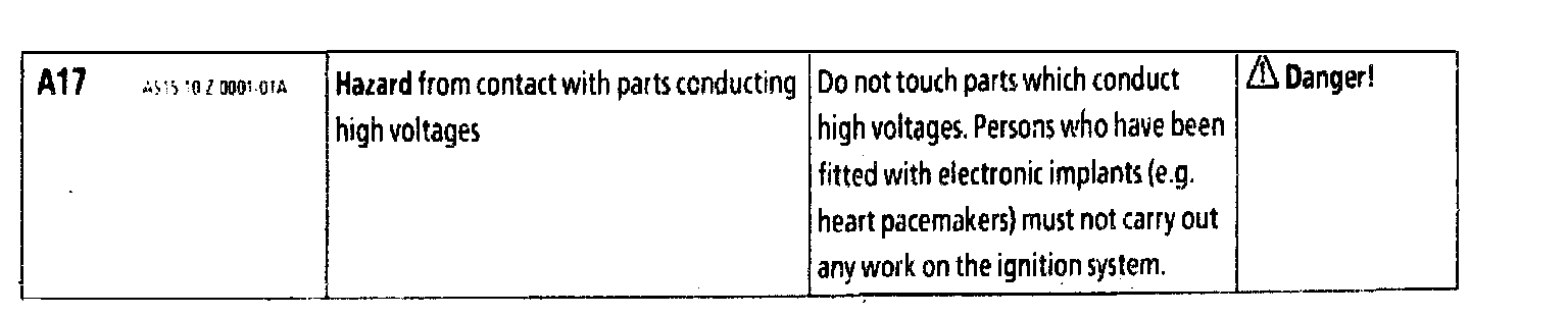 - Persons with heart pacemakers must not carry out any work on the ignition system.