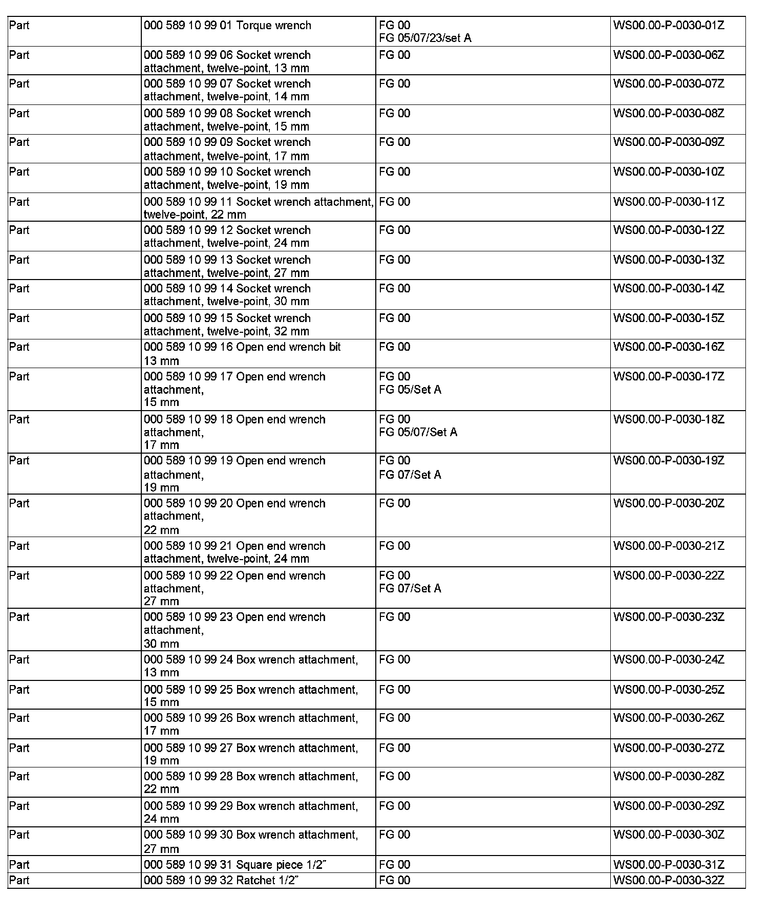 WS00.00-P-0030Z 000 589 10 99 00 Tool Kit