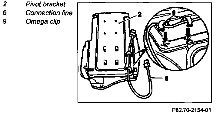 7 Unclip connection line (6) and loosen omega clip (9)