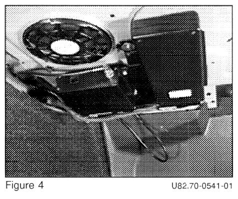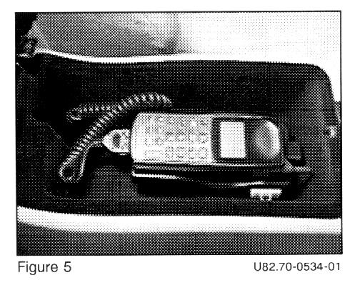 5. Open main compartment. Locate cover in rear of compartment. Open cover, connect handset connector to fixed connector. Connect coax cables together. Connect coil cord to portable phone (Figure 5). Route coil cord along recess so that it exits on right side opening. Close cover.