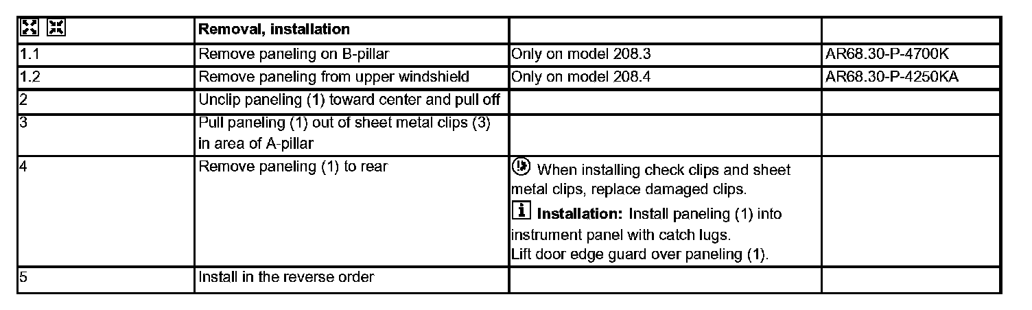 AR68.30-P-4050K Remove/Install Paneling on A-Pillar