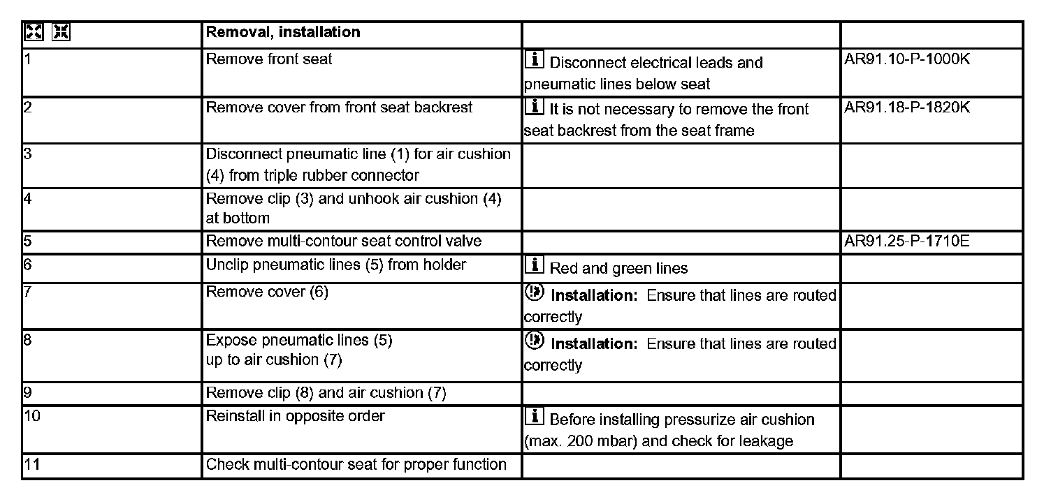 AR91.25-P-1740K Removing And Installing Air Cushions In Multi-contour Backrest