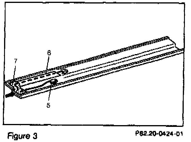 5. Secure wire from the illumination foil on the underside of the joined door sill trim panels with adhesive tape (6) (Figure 3). Apply felt (7) to prevent wire nicking as shown by the arrow in Figure 3.