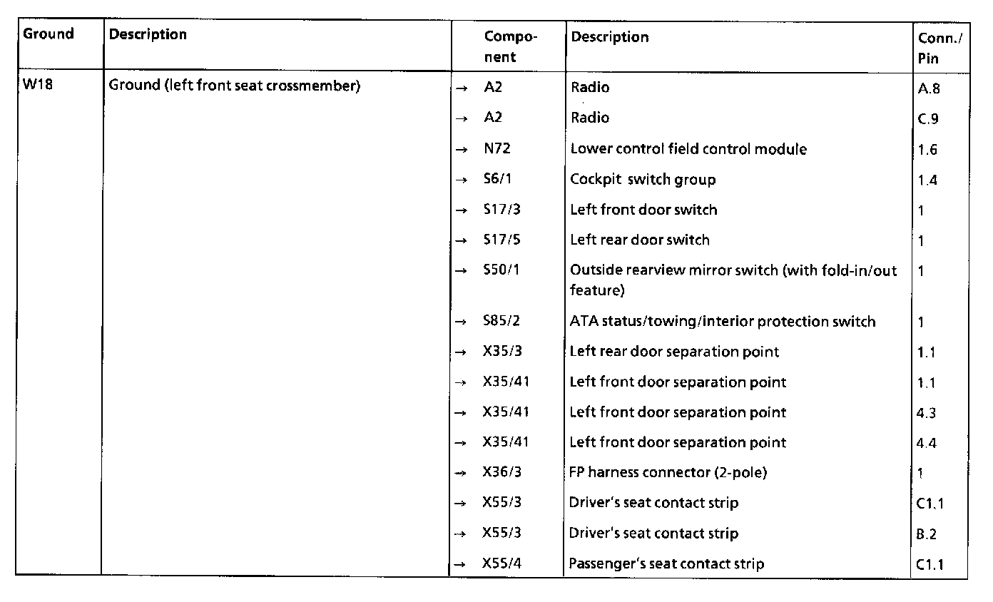 Interior Compartment (Left), Arrangement and Assignment of Ground Points: