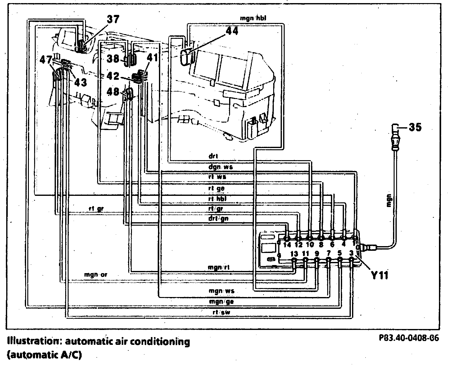 The vacuum element for the fresh/recirculated air flap (44) is located on the heater/A/C housing.