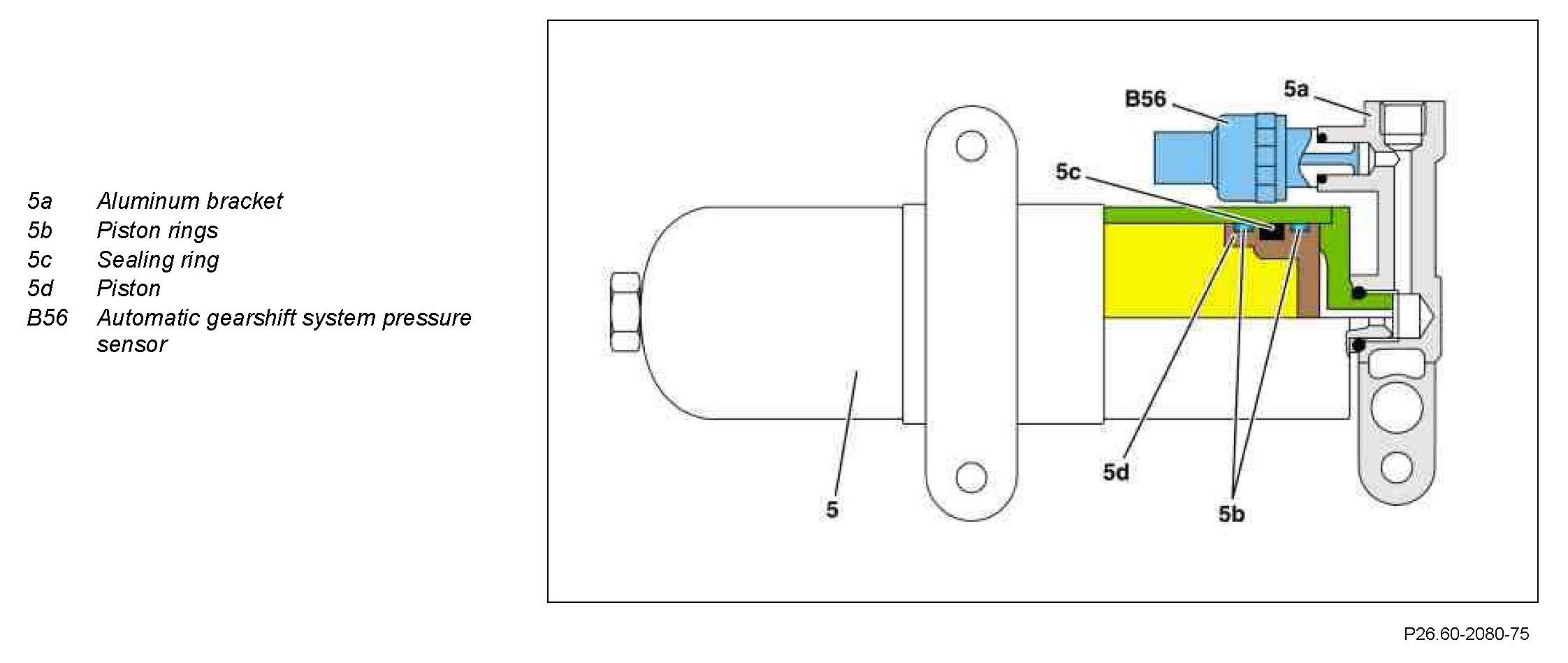 The piston accumulator unit in the hydraulic pressure reservoir (5) consists of the following components: