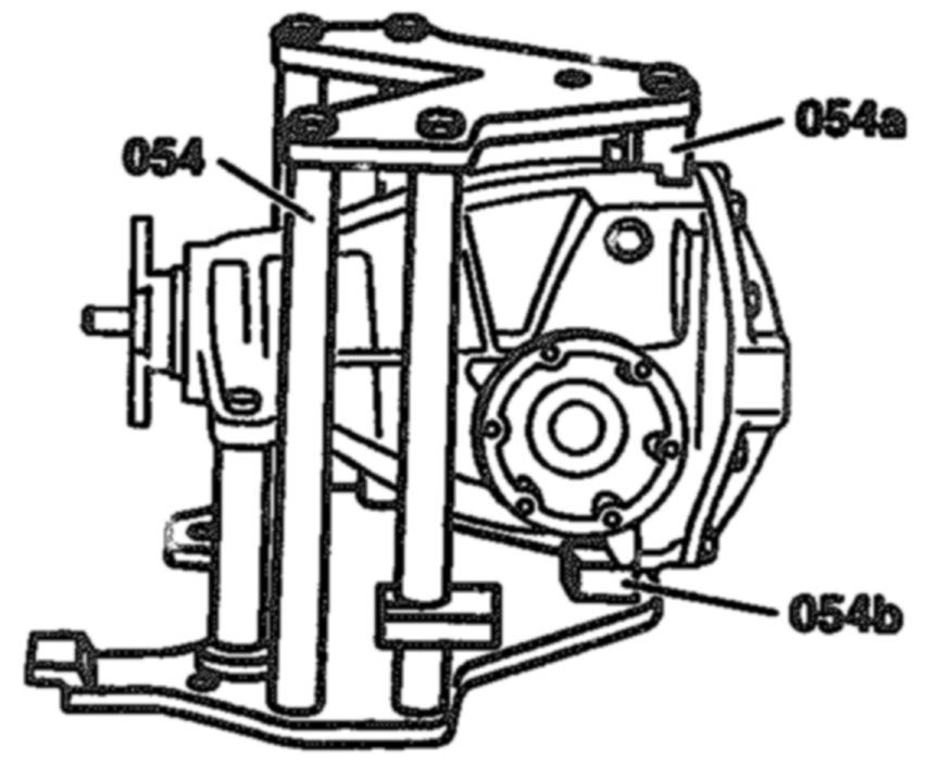 3. Clamp rear axle center assembly in assembly stand tool No. 129 589 00 31 00 (054) and secure with support parts, part 15 and 09 (054a and 054b), or equivalents