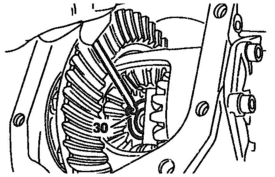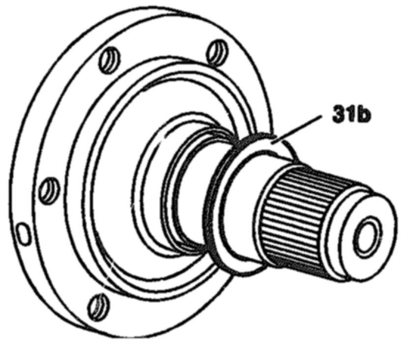b. Check axial play between the connecting flange and differential side gear, installing a thicker or thinner spacer (31b) if necessary.