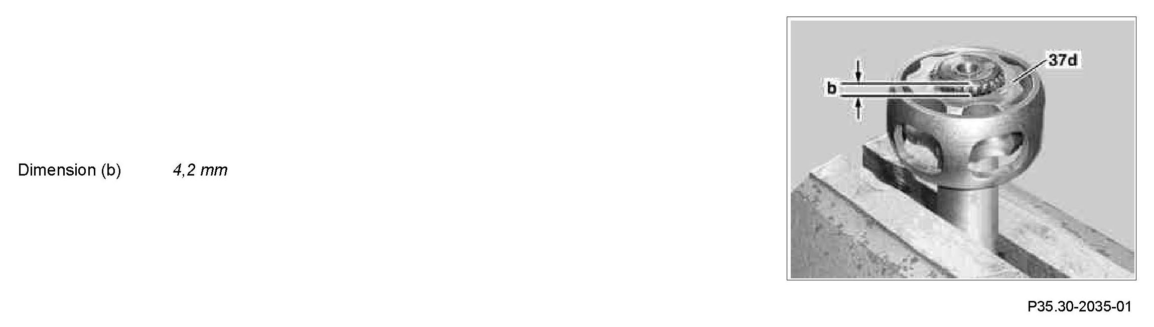 4 Using a suitable tool press on joint hub (37d) until dimension (b) is reached.