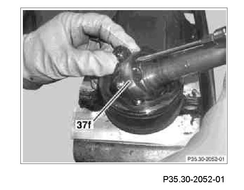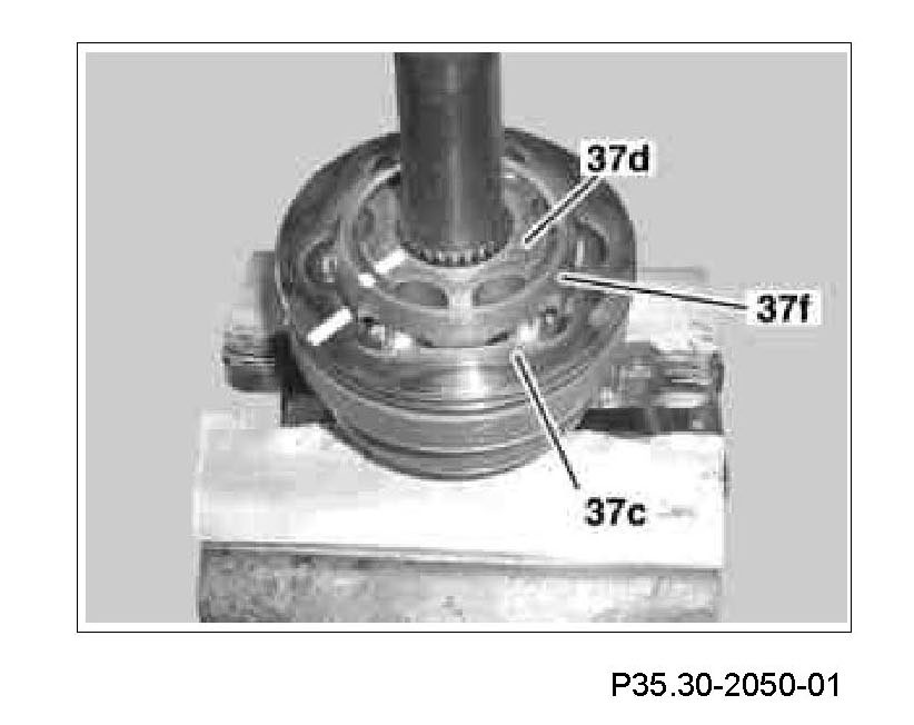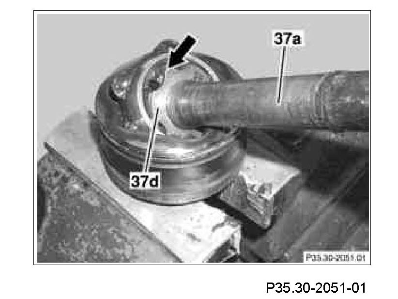 9 Insert rear axle shaft (37a) with joint hub (37d) and ball retainer (37f) in joint ring (37c) and align so that the balls can be inserted.