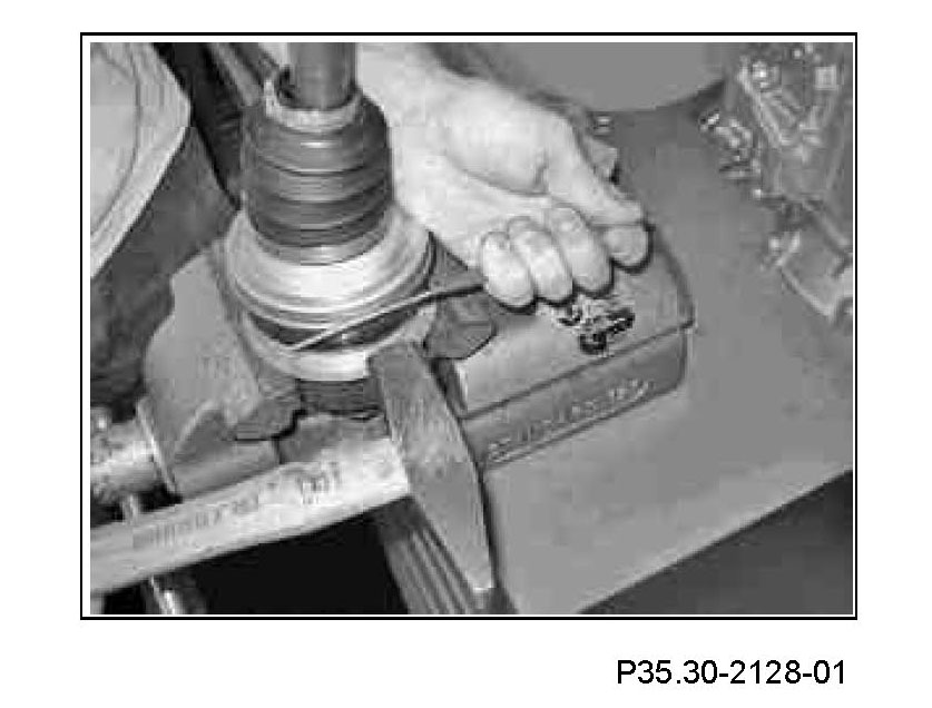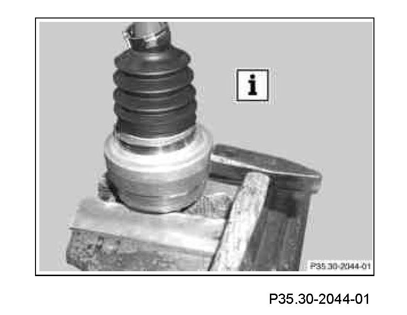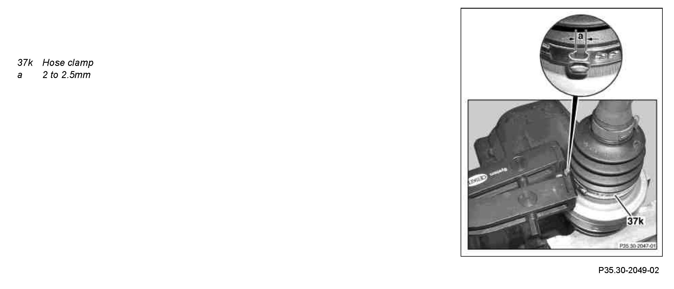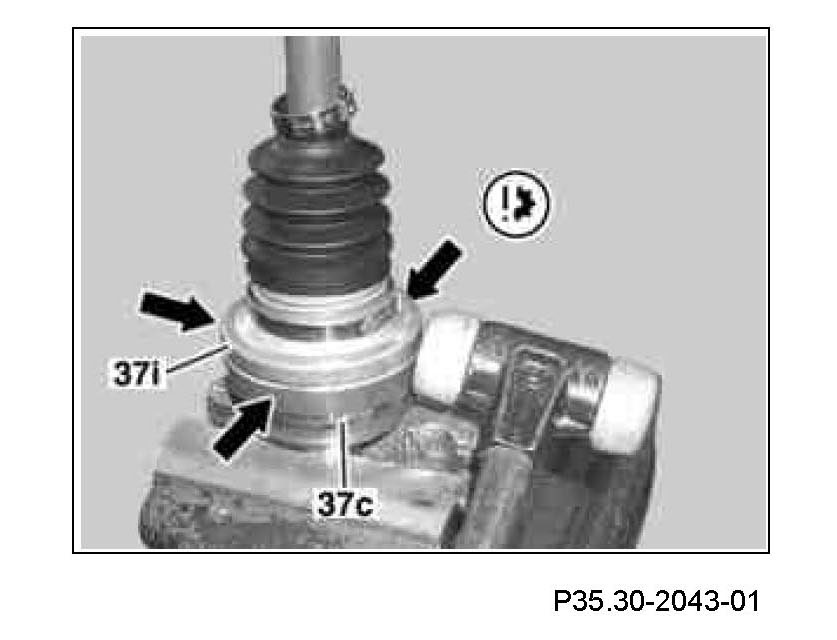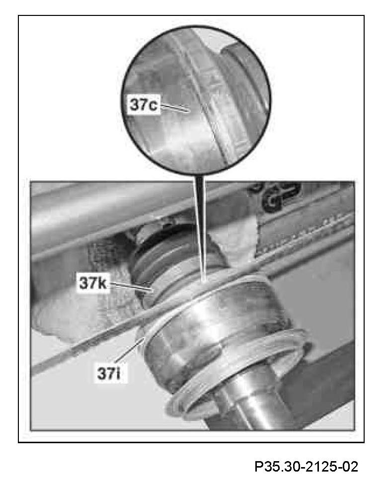 8 Mount cup seal (37i) with hose clamp (37k) and slide on as far as the end stop on the joint ring (37c). If necessary, drive fully home by tapping gently with a plastic mallet.