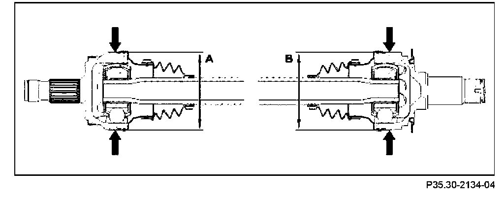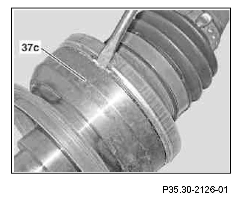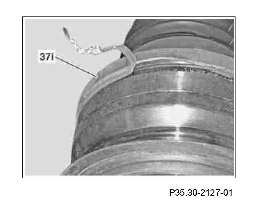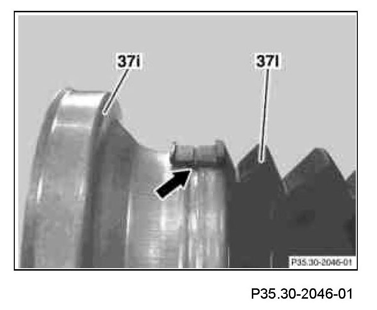 After the boot (37l) is slid on, no grooves on the rear half shaft should be visible at the end with the smaller diameter, this indicates that the ridge (37l) on the boot is in the first groove.