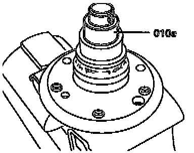c. Place thrust piece (010e) with large diameter on the rear on the rear axle shaft flange
