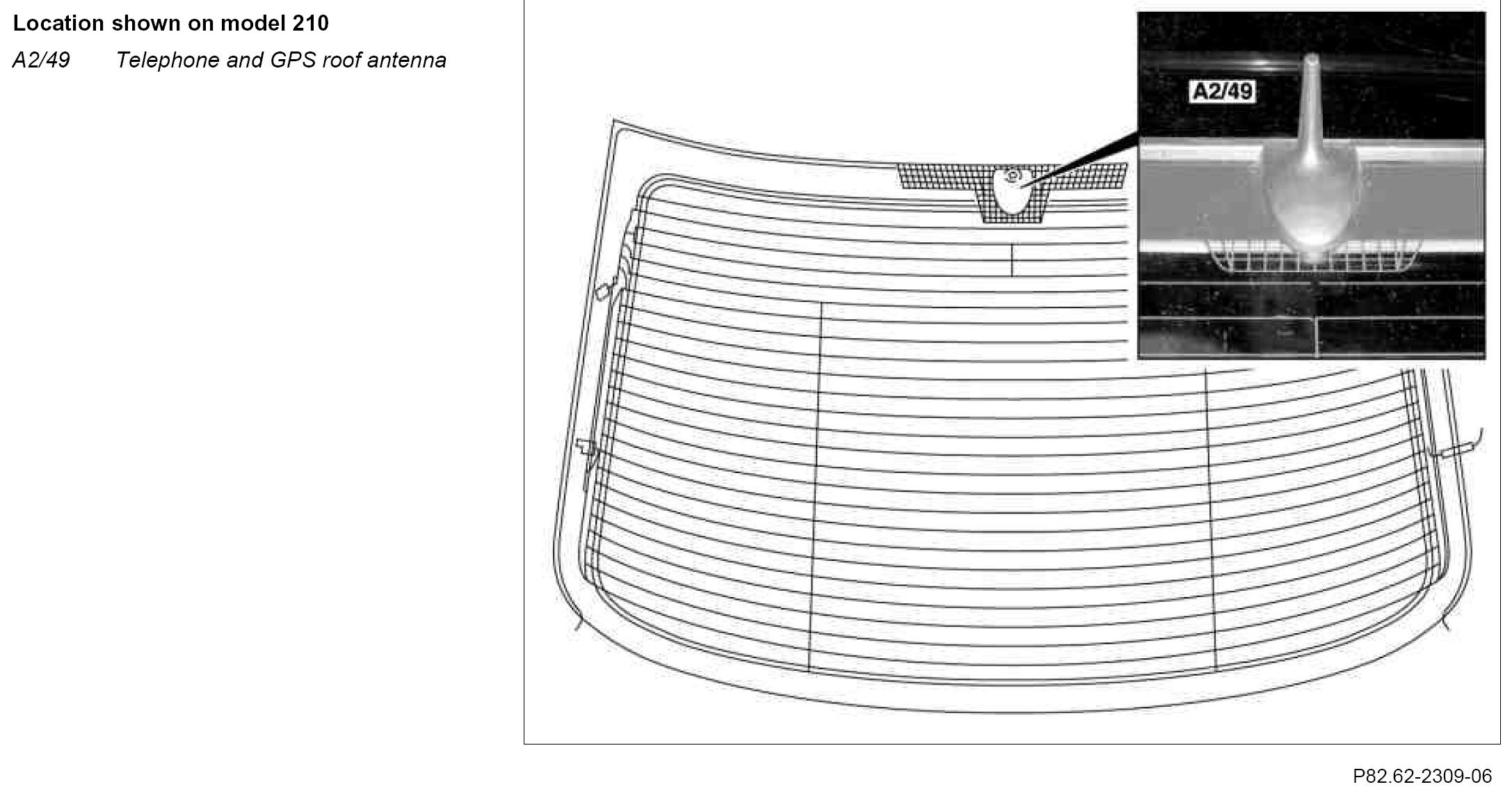 The telephone antenna (A2/49a1) and the GPS antenna (A2/49a2) are integrated in an antenna housing.