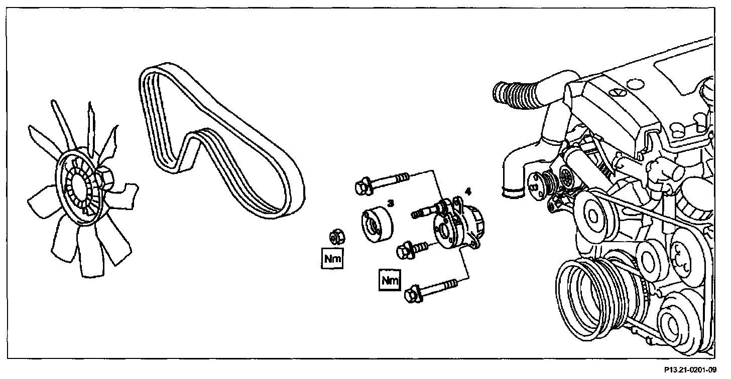 Collar nut of belt tensioning pulley to tensioning device - 25 N.m
