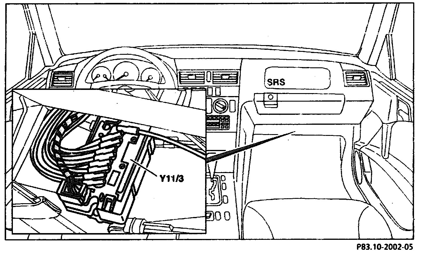 The switchover valve block (Y11/3) is located behind the glove compartment.