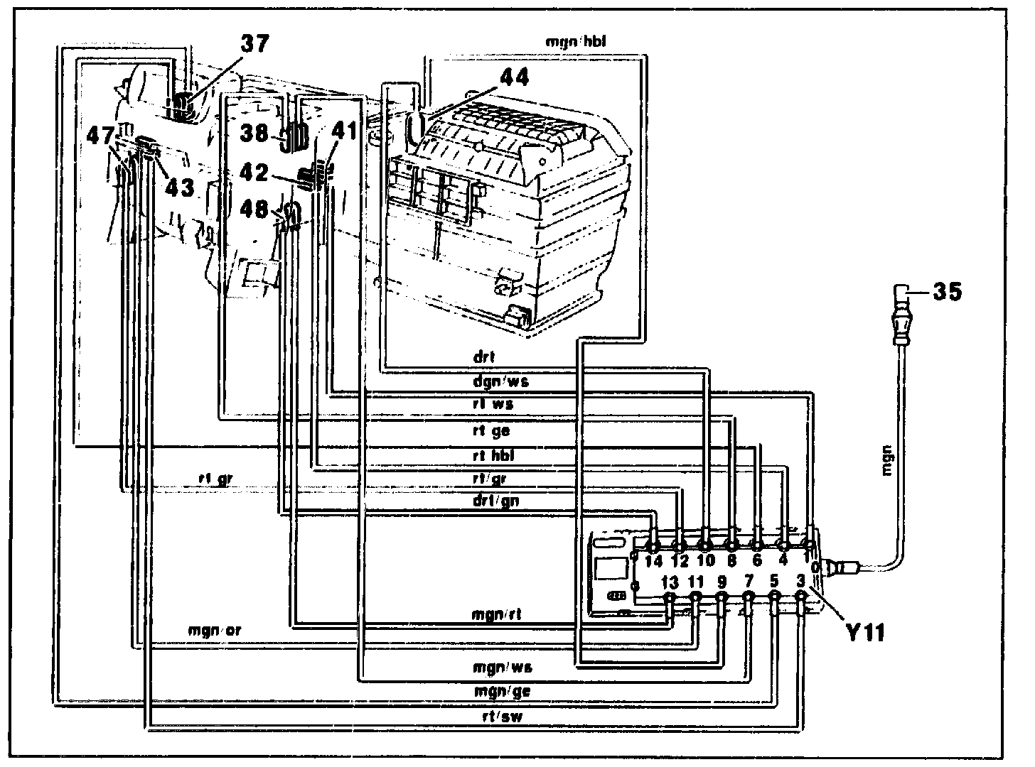 The footwell flap vacuum elements (43, 48) are located on the air conditioning housing.