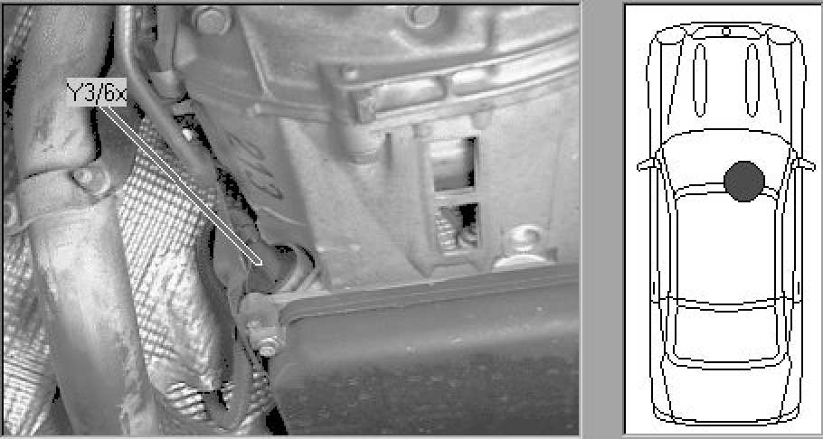 Under car, right front of transmission housing