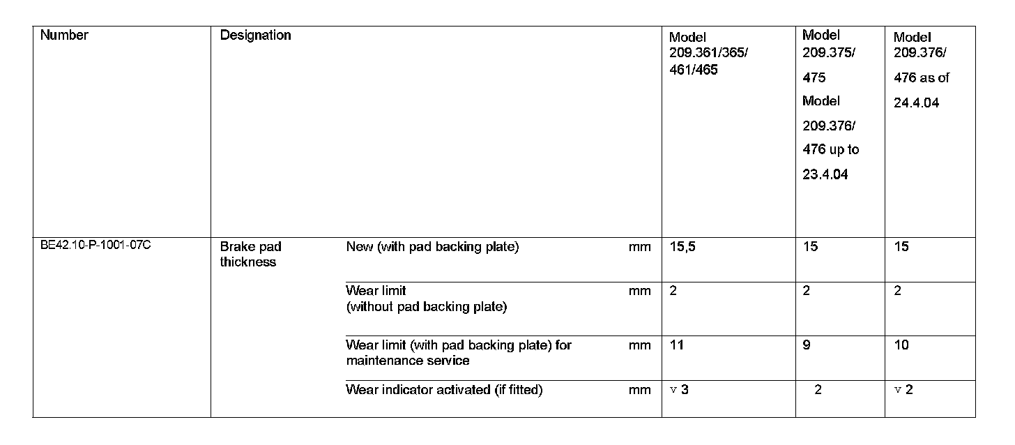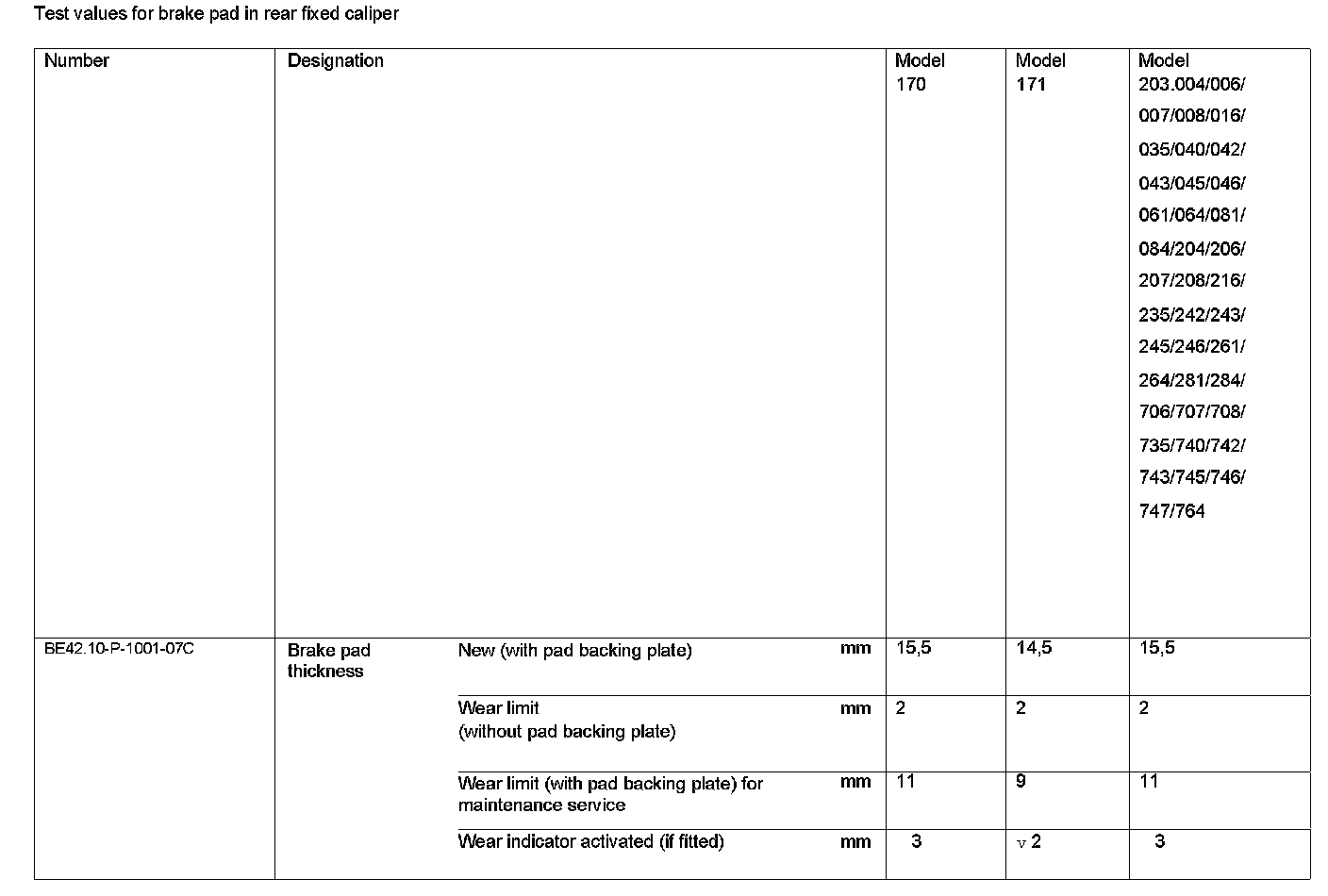 BE42.10-P-1000-07C Test Values For Brake Pad In Rear Fixed Caliper