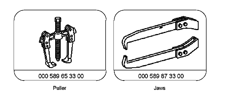 9 Using puller and jaws, pull off 4th gear idler gear (19) together with 3rd/4th gear synchronizer unit (30) (arrows).