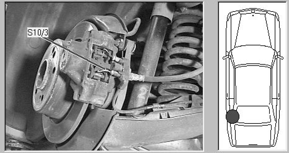 Left rear brake caliper (early vehicles have 2, later have 1, early vehicle shown)