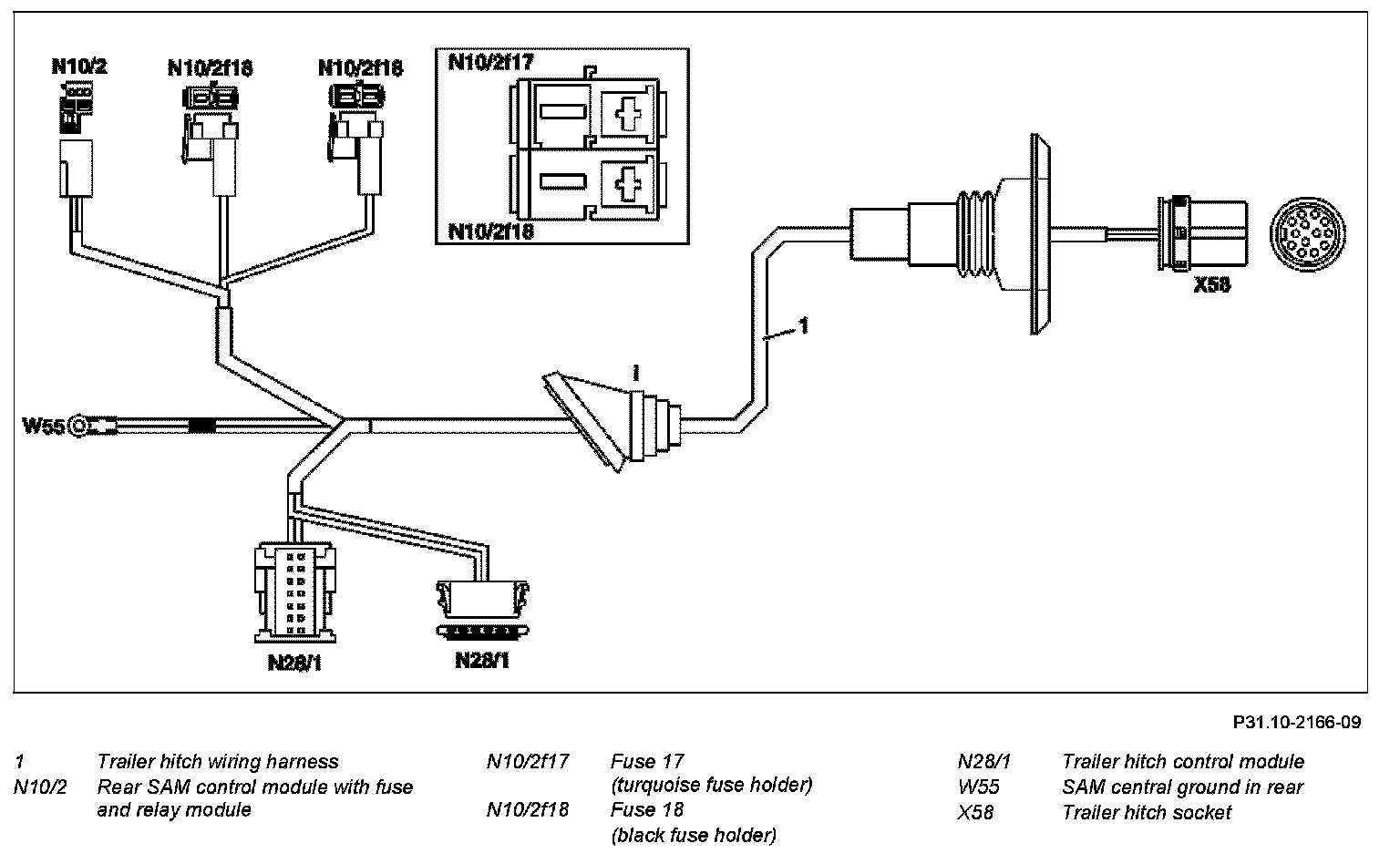 10. Position trailer hitch socket (X58) in socket carrier (10a) and push socket housing (10) onto trailer hitch socket (X58) and seal with sleeve (10b).