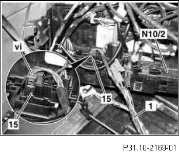 6. Plug violet 3-pin coupling (vi) into violet slot (15) of the rear SAM control module with fuse and relay module (N10/2).