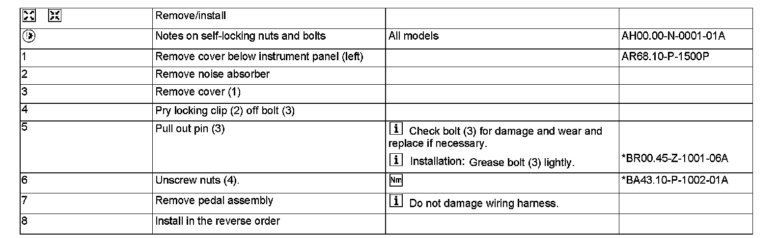 AR29.10-P-0300QA Remove/Install Pedal Assembly