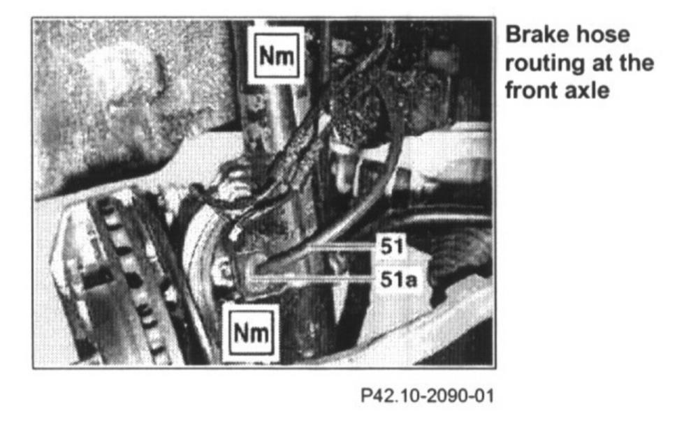 2 Unscrew brake line (5) from brake hose (51) and seal off openings