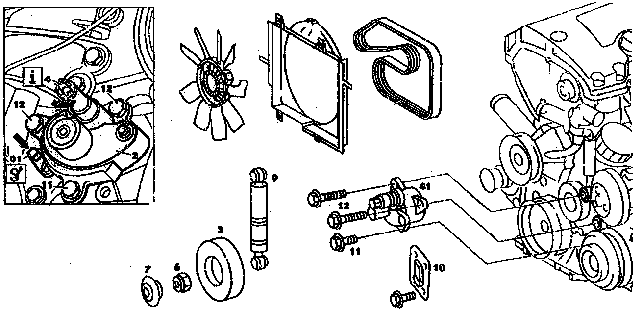 1. On models with viscous fan coupling, remove coupling (26), refer to cooling system.
