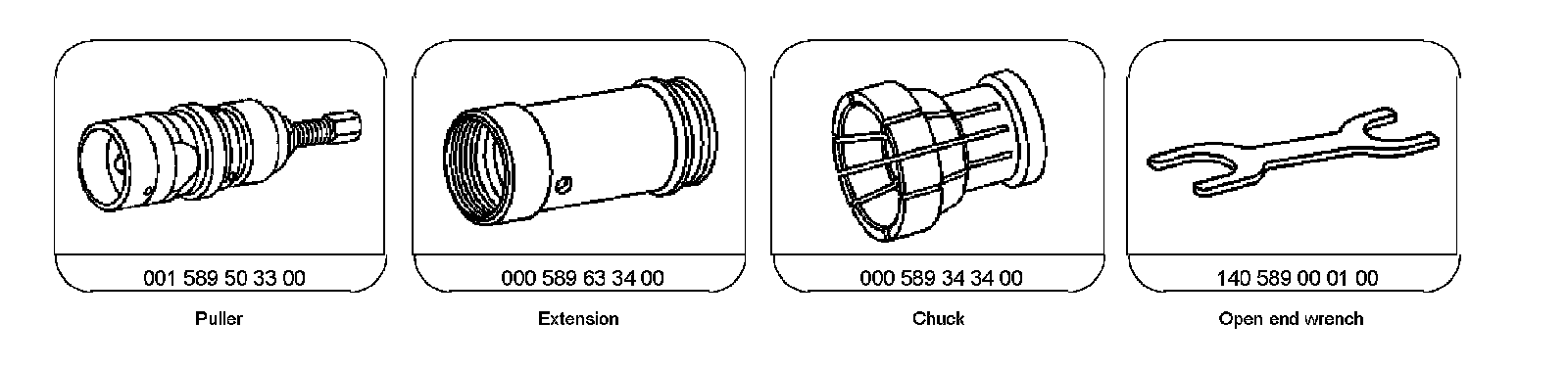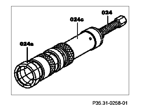 1 Assemble puller (024) with extension (024c) and clamping pliers (024a) and tighten.