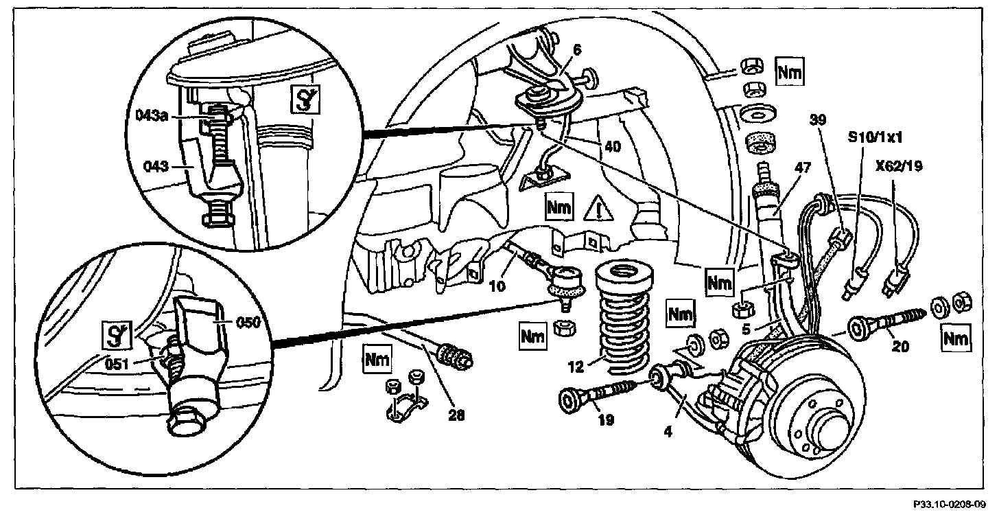 3.1 Disconnect VSS sensor connectors (X62/19) and left front brake pad wear sensor connector (S 10/1x1) in component compartment