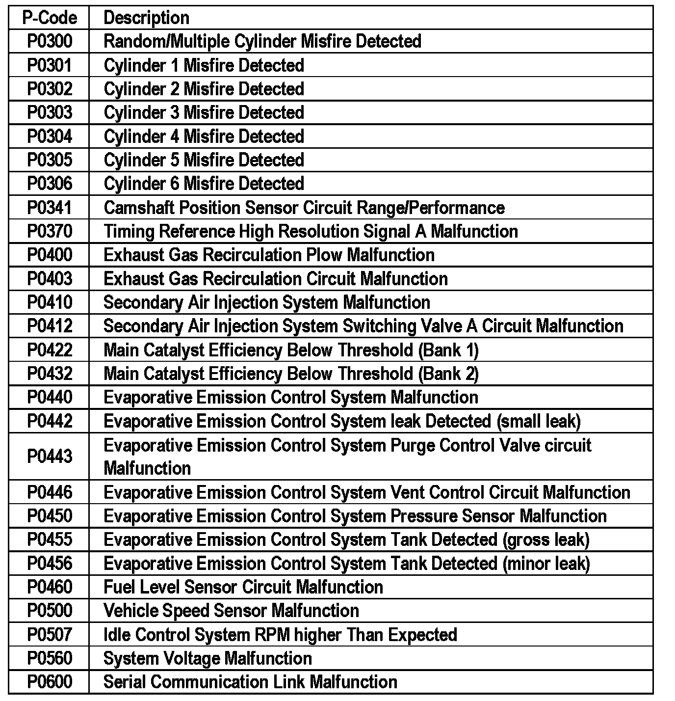 P0300 - P0600: