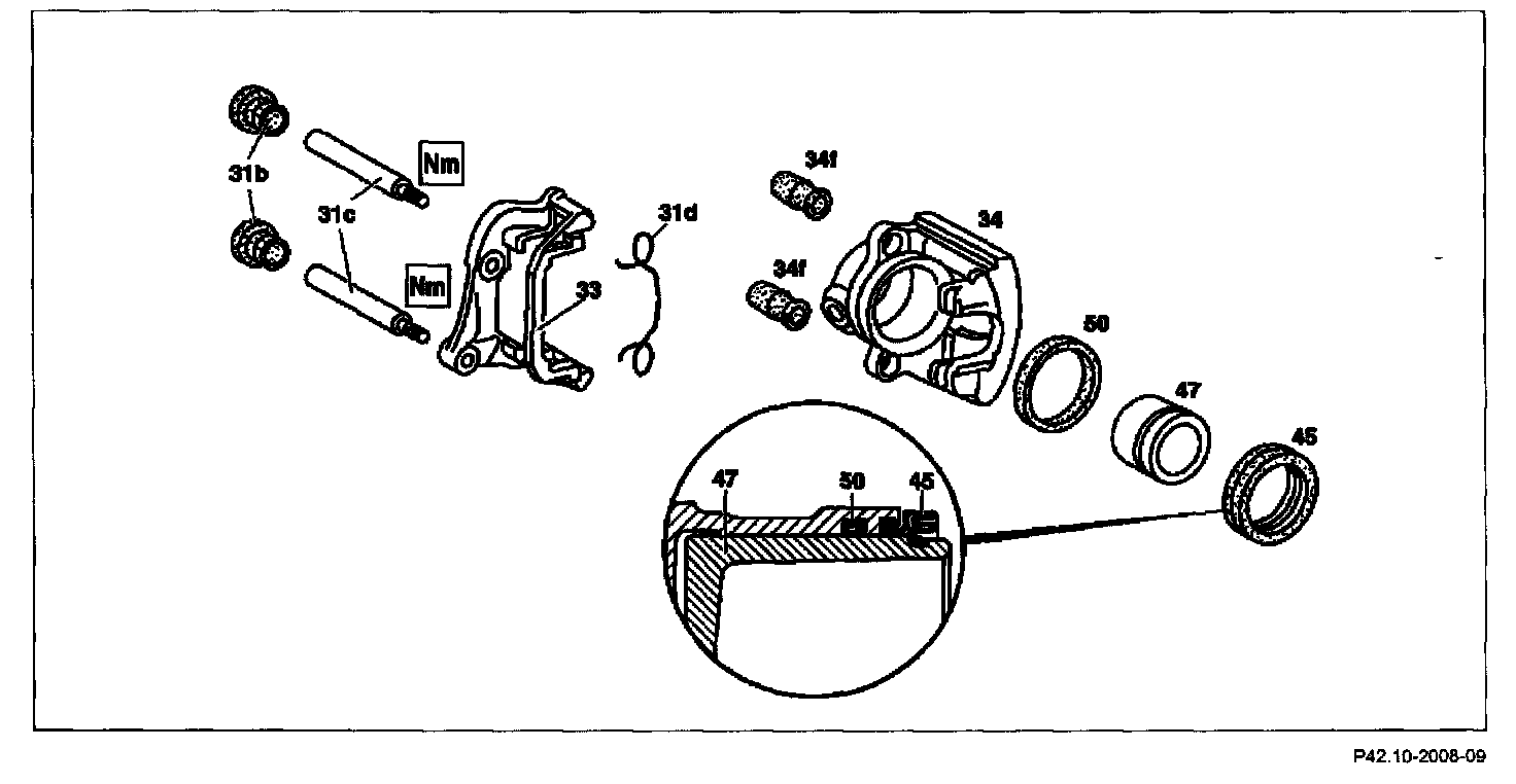 CAUTION: Floating caliper (34) and repair kit must be from same manufacturer.