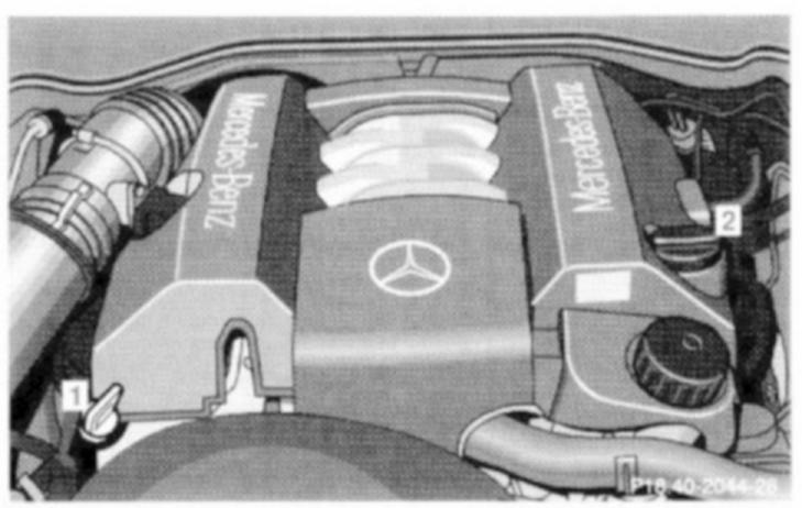 Checking Engine Oil Level:Underhood View - E 320 Shown: