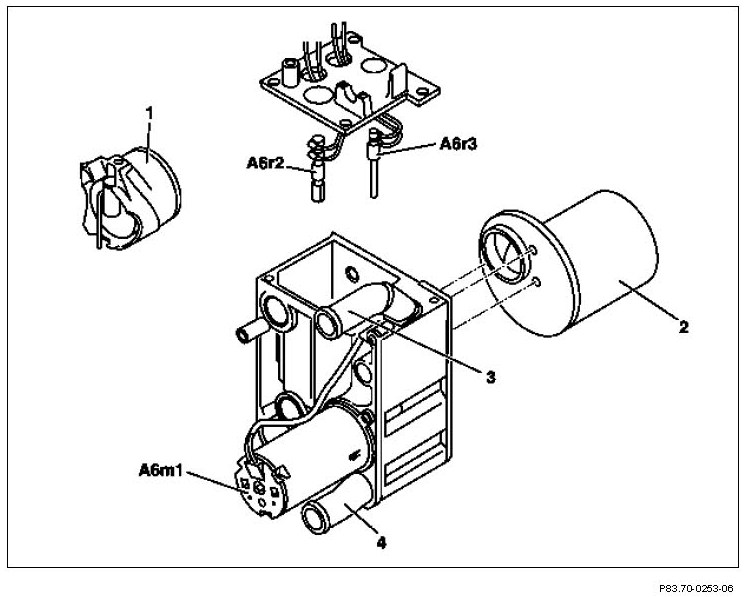 Illustration shows burner housing of stationary heater unit with coolant circulating pump (A6m1) connected. On heater booster heater unit without circulating pump, pump installation opening on burner housing is sealed tight with a sealing plug.