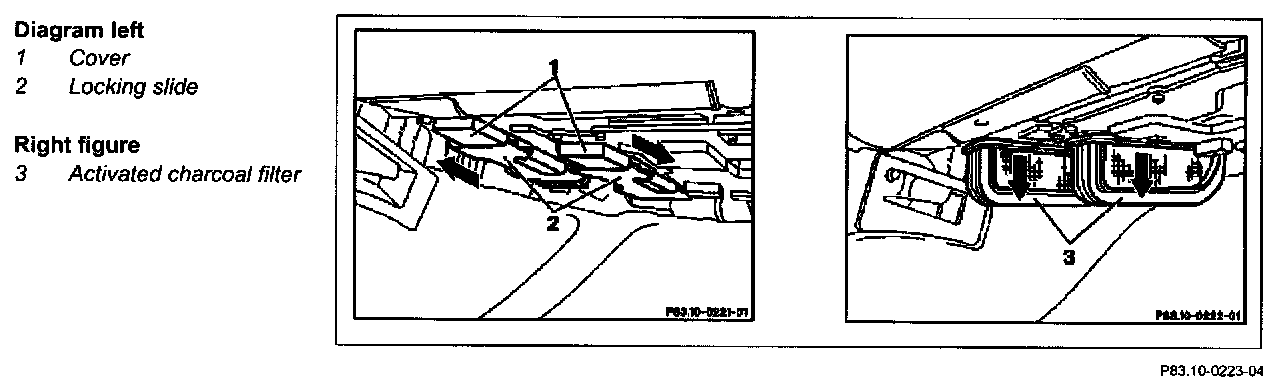 2 Move locking slide (2) in direction of arrow and remove cover (1)