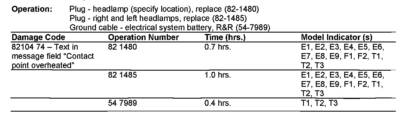 If the H7 bulb in the halogen headlamp is inoperative in the above vehicles, check the contact point between the wire terminal and the bulb for signs of overheating. Increased temperature in this area may be the result of low speed operation and setting the headlamps to constant or use of daytime running lamps. The increased temperature in the headlamp unit reduces the contact pressure between the wire terminal and the H7 bulb plug. This results in an increased resistance at the plug which can raise the temperature high enough to damage the plug. To resolve, please perform the following.