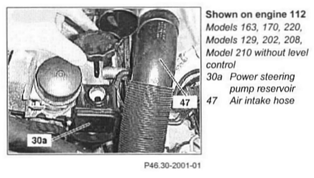 4 When the engine is running, turn the steering wheel several times from lock to lock, meanwhile depending on the version filling up with MB steering gear oil or central hydraulics oil if necessary