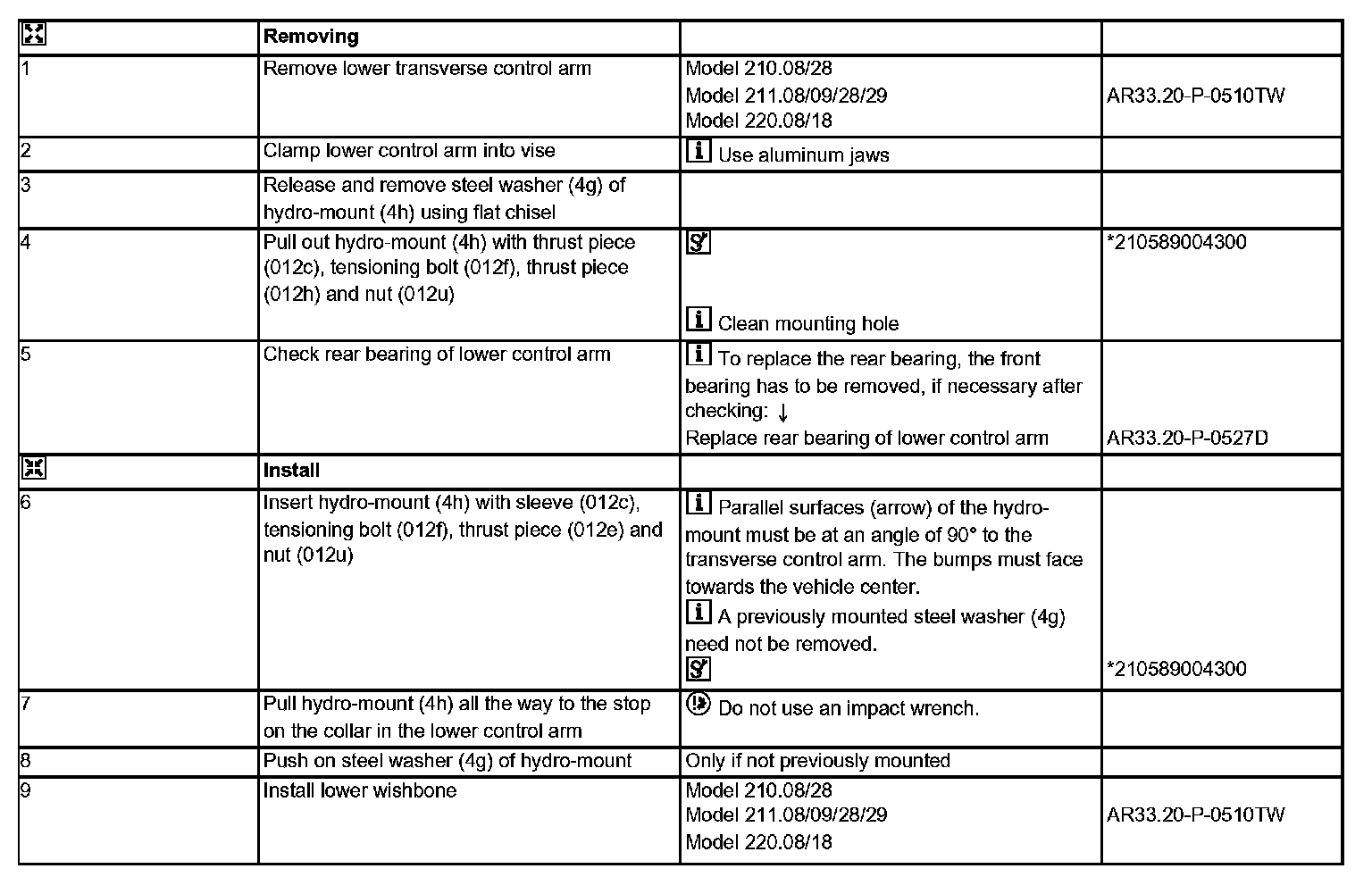 AR33.20-P-0526D Replace Front Bearing of Lower Control Arm