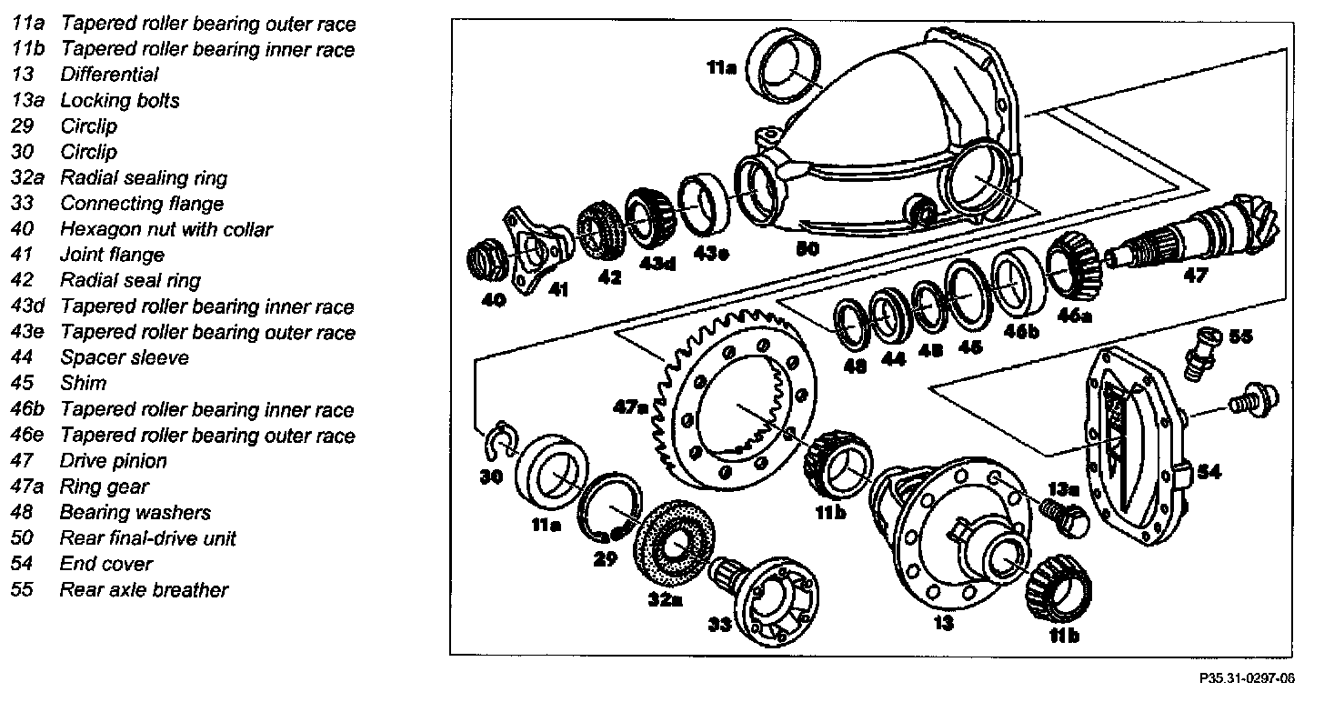 51 Press radial sealing rings (32a) into rear axle housing