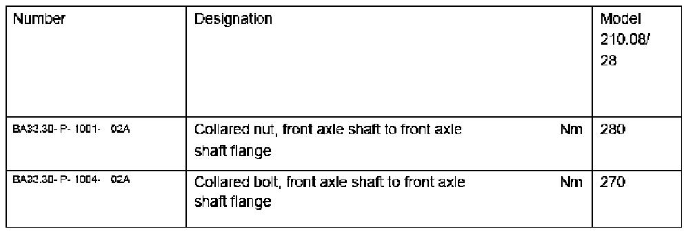 Bolted conection, front axle shaft to front axle shaft flange, modified: new step 2 included.