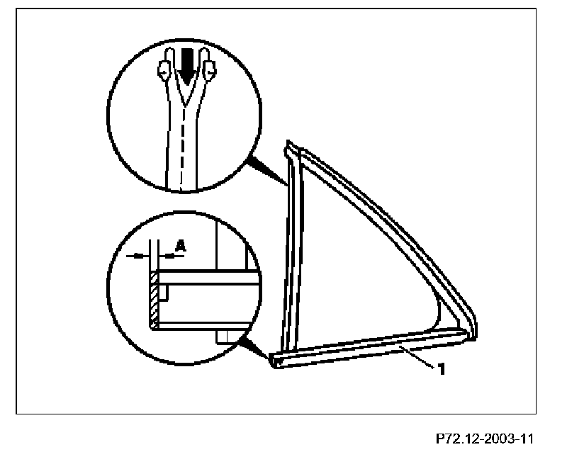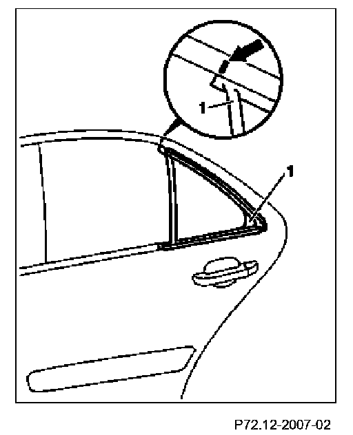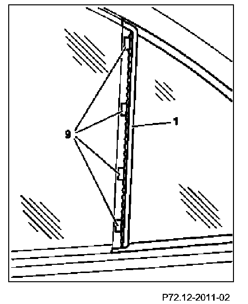 19. Align center bar on seal (1) and fasten to window with MB special adhesive.