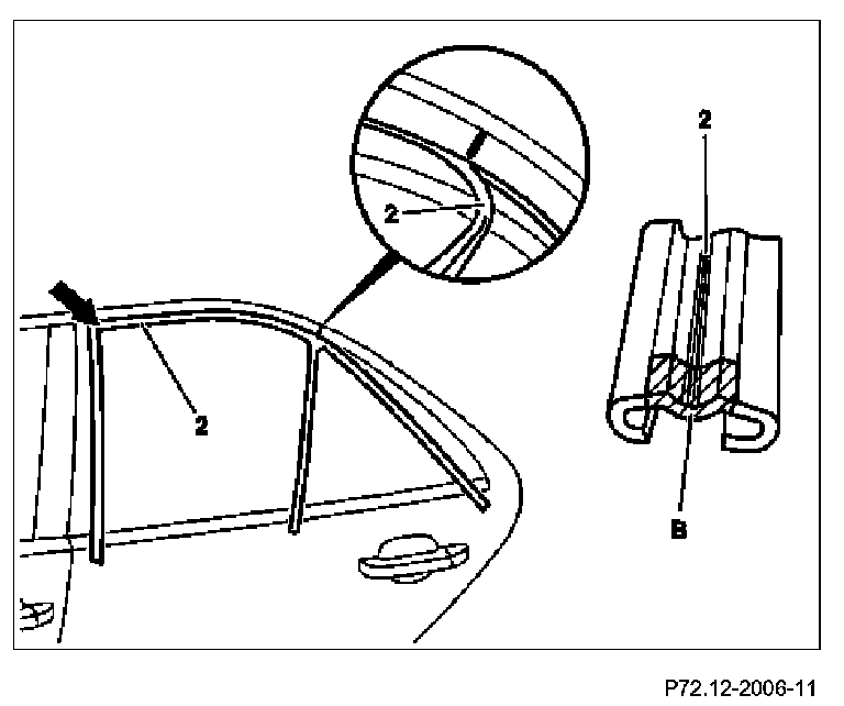 8. Fill seal (2) up to marking on door frame with "Terolan 3200" sealant.