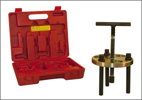 Strut tool for 220 chassis Mercedes used in removal and installation of the snap ring on the cover of head bearing for front axle air suspension struts. Only affects vehicles with air suspension(AIRmatic). Comparable to MB # 220 589 00 61 00.