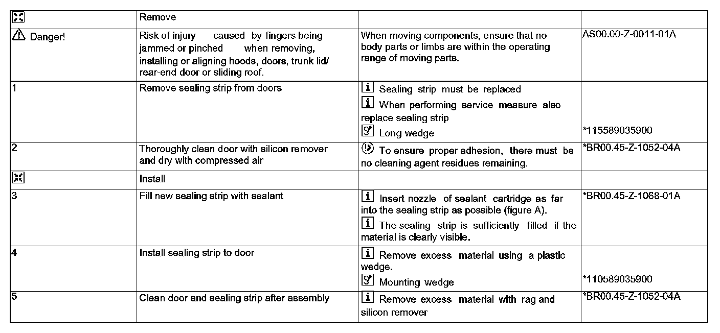 AR72.12-P-1019P Remove/Install Sealing Strip on Door Bottom Edge
