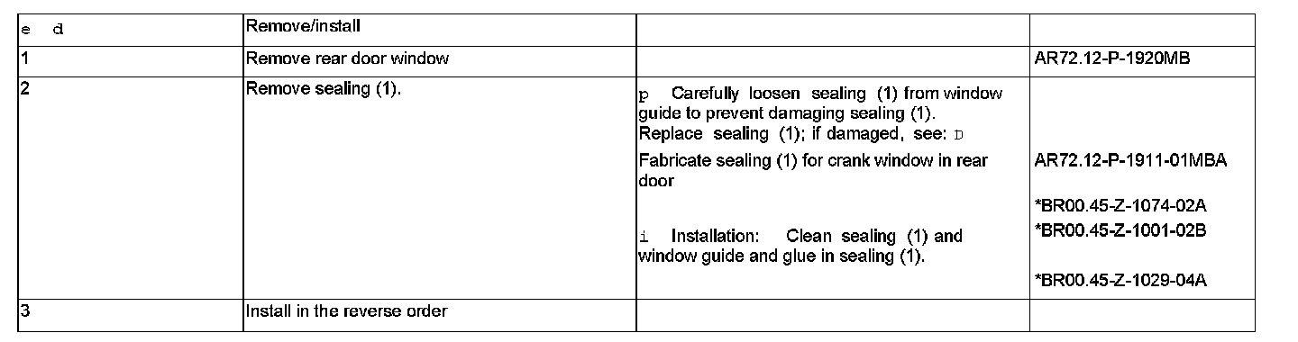 AR72.12-P-1911MBA Remove/Install Sealing For Crank Window on Rear Door