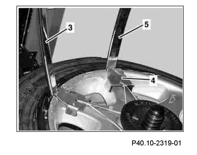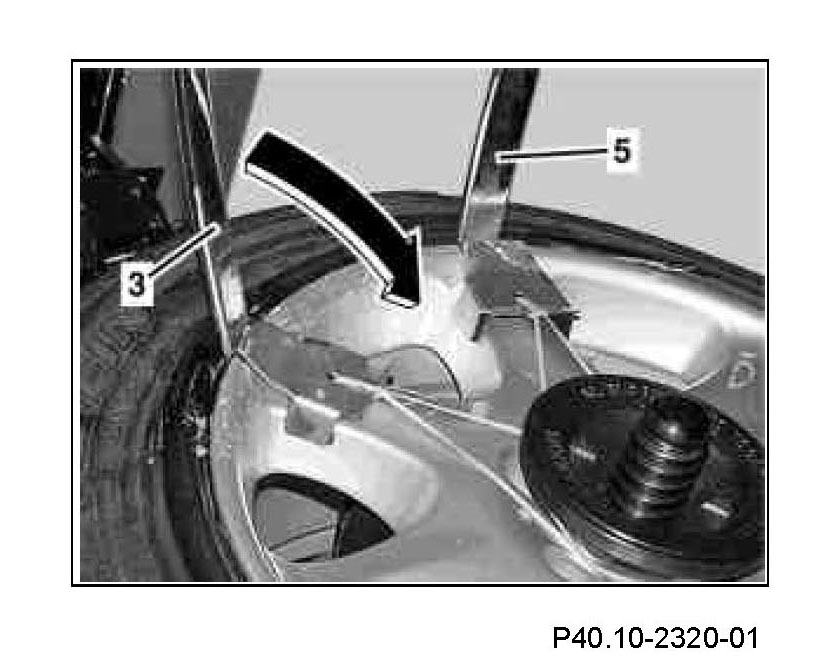 5 Hold both assembly levers (3, 5) and remove the upper mounting bar from the wheel.