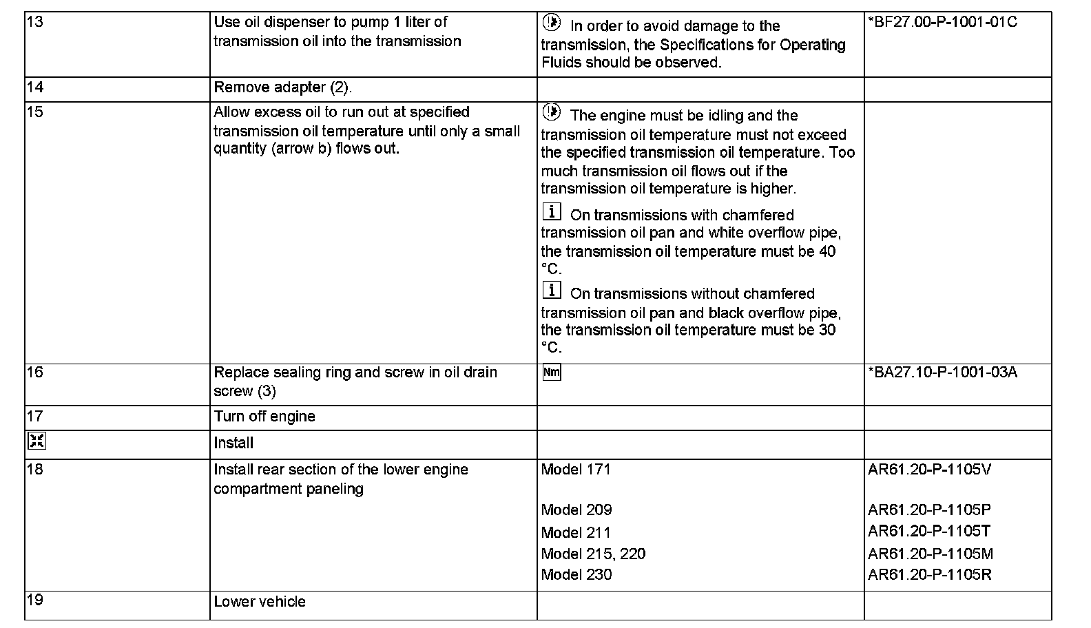 AR27.00-P-0100W Check Oil Level In Automatic Transmission and Correct If Necessary