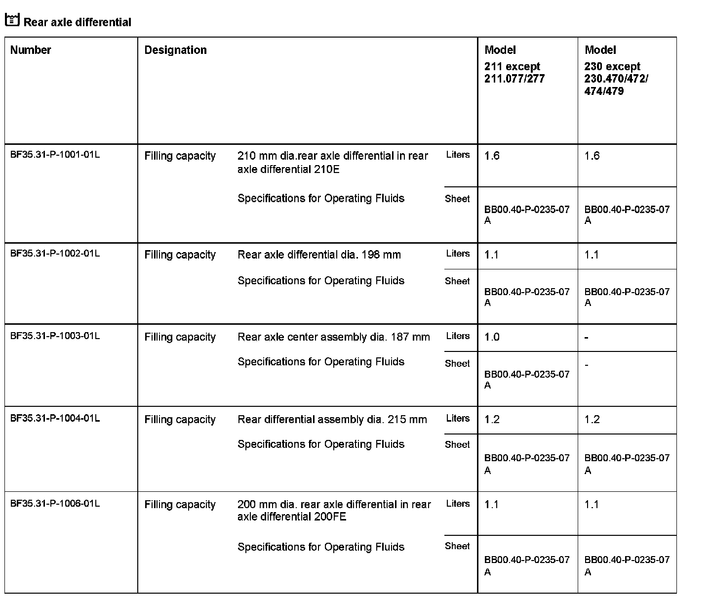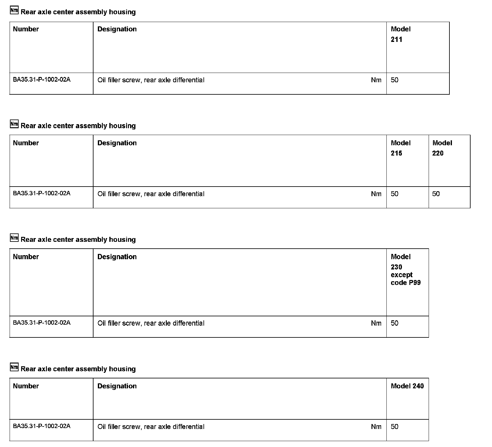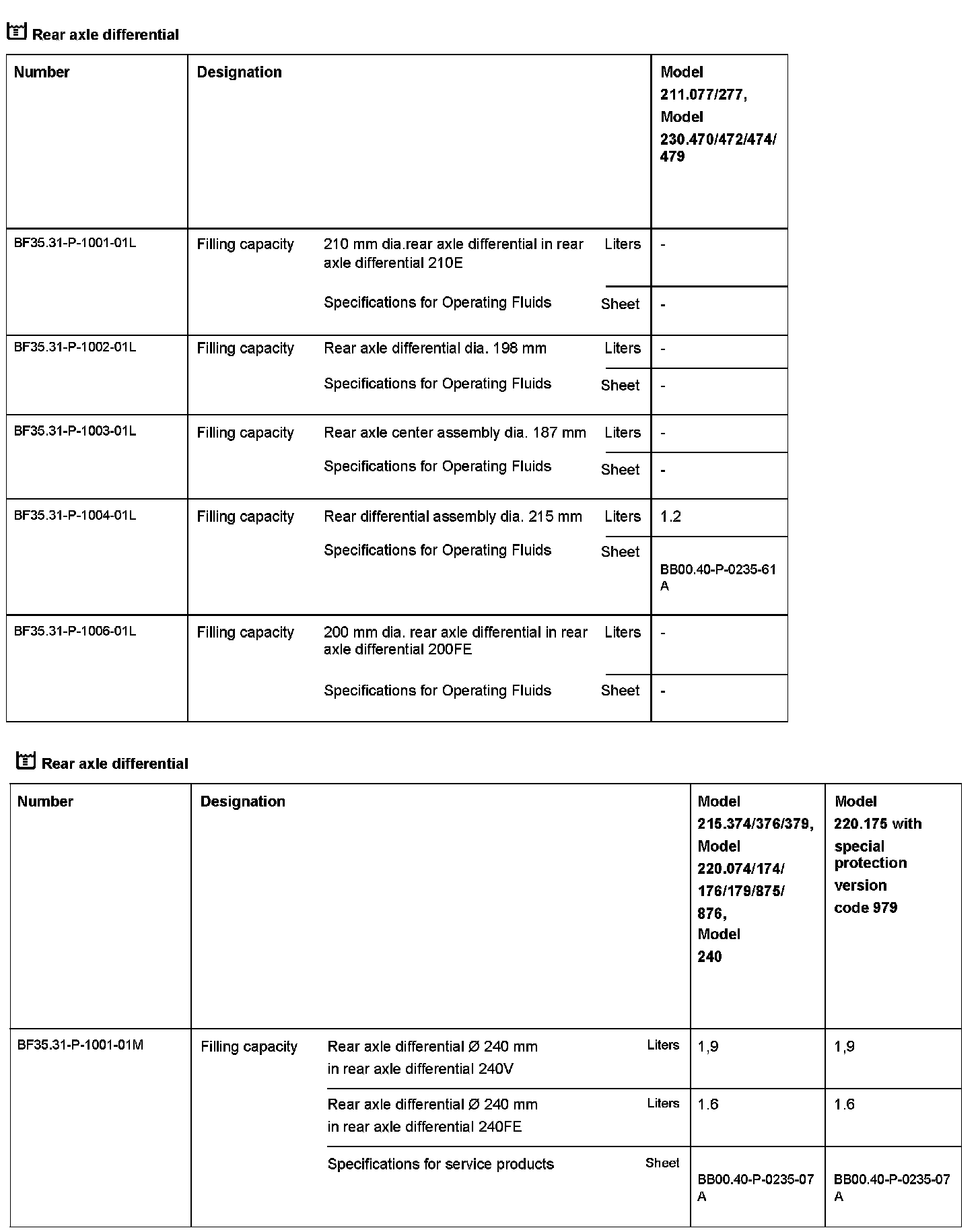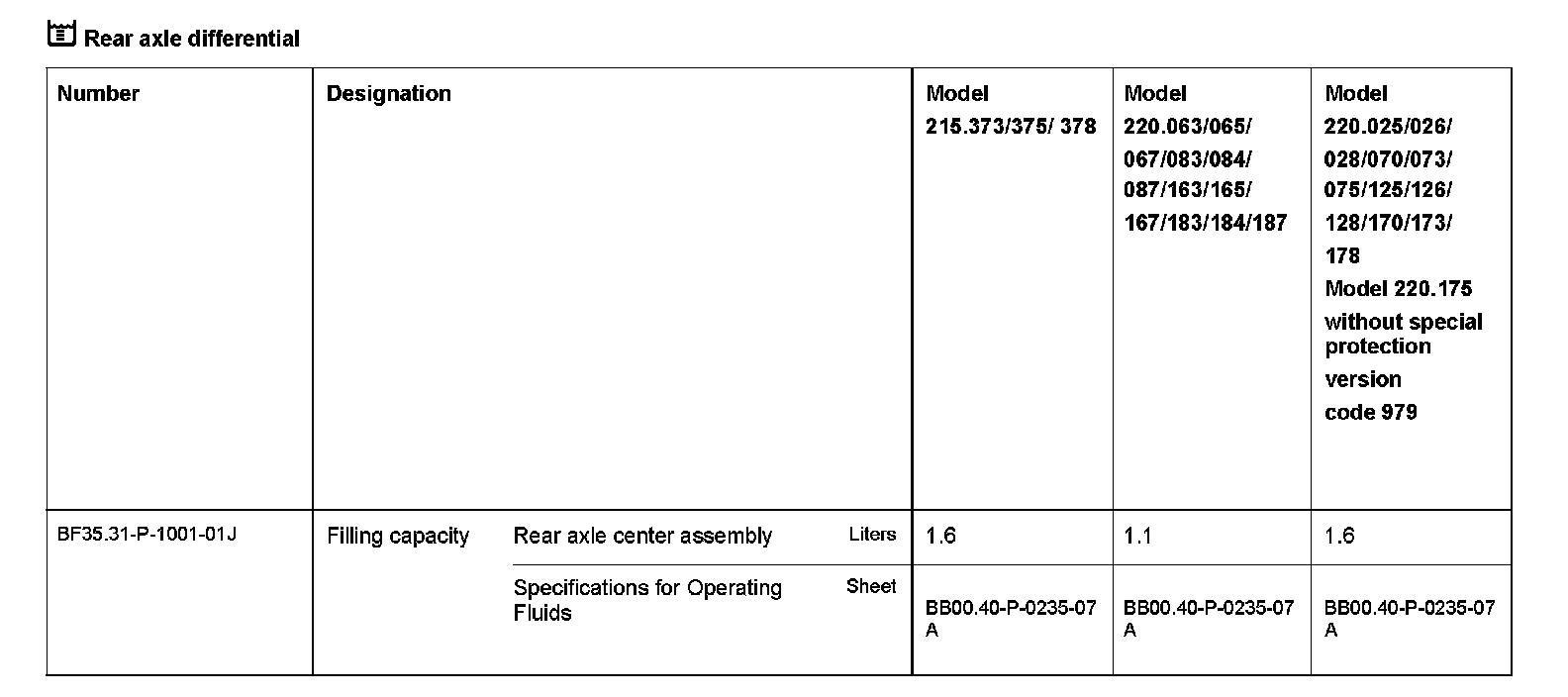 The fully synthetic oil can also be used without reservations on rear axle center assemblies which have been produced before 4.11.2001. Mixing old universal hypoid gear oil and new FE hypoid gear oil does not impair the basic functions such as wear characteristics, leak tightness, etc. at the rear axle differential, but should, however, be avoided in the interest of better fuel economy.